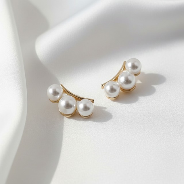 3連パールがシンプルながらも洗練された印象を演出します。 華奢なゴールドラインが顔まわりをすっきり見せてくれるので、デイリーからきれいめスタイルまで幅広く活躍。 主張しすぎないデザインでオフィスやフォーマルなシーンにも自然になじみます。 縦:1.3cm 横:2.5cm 留具:クリップ式
