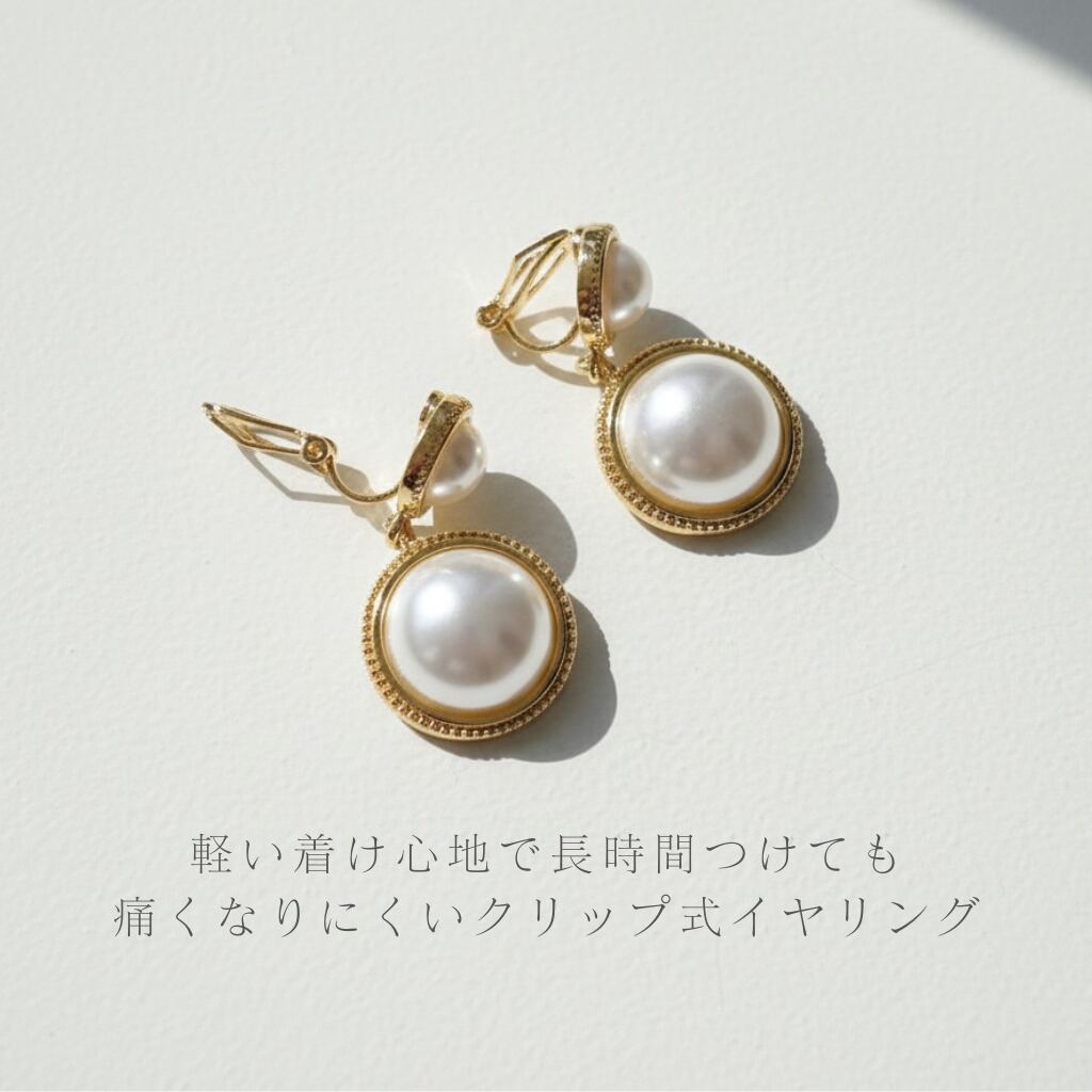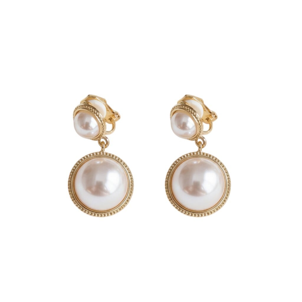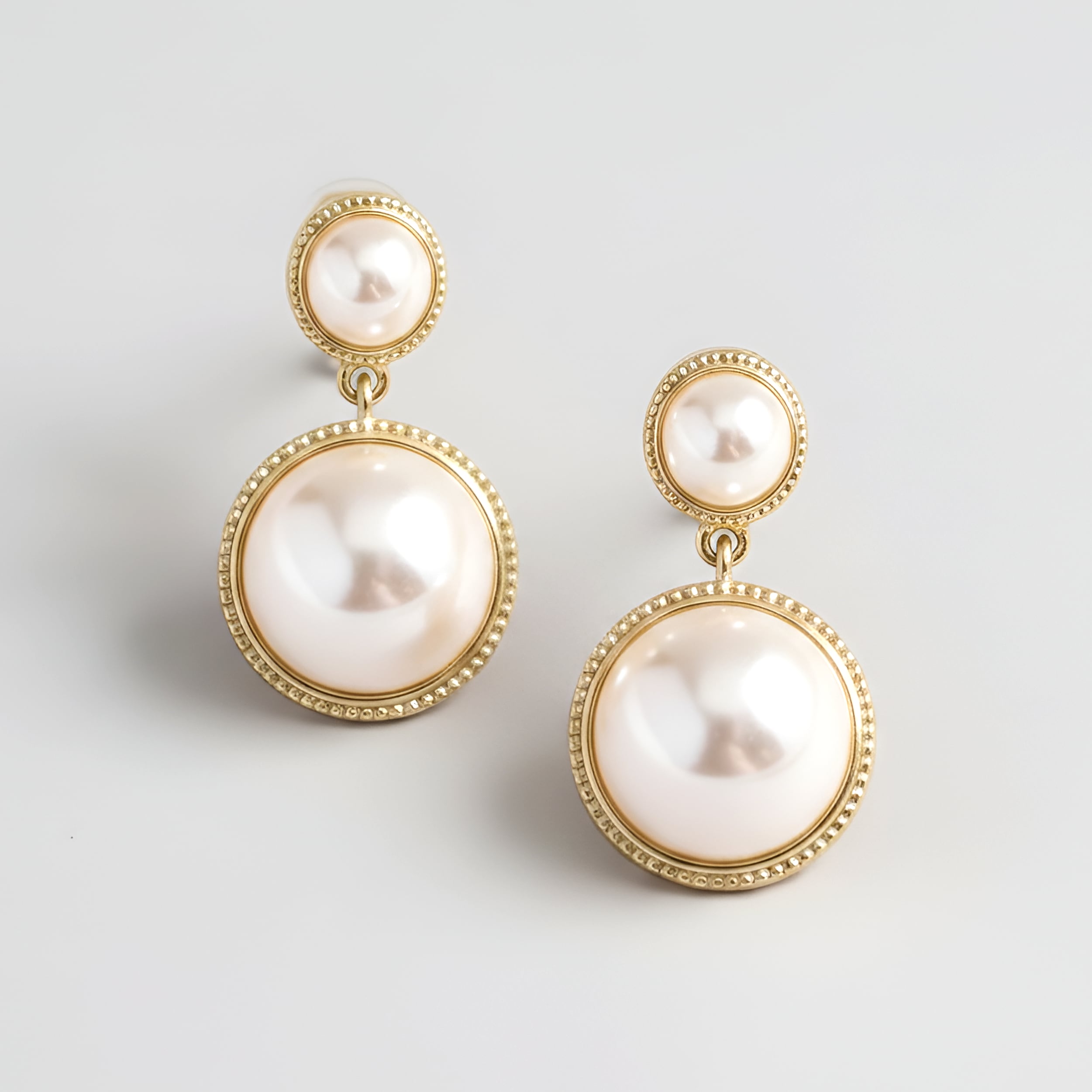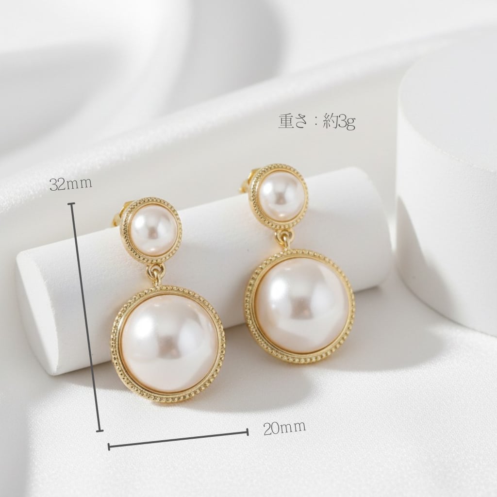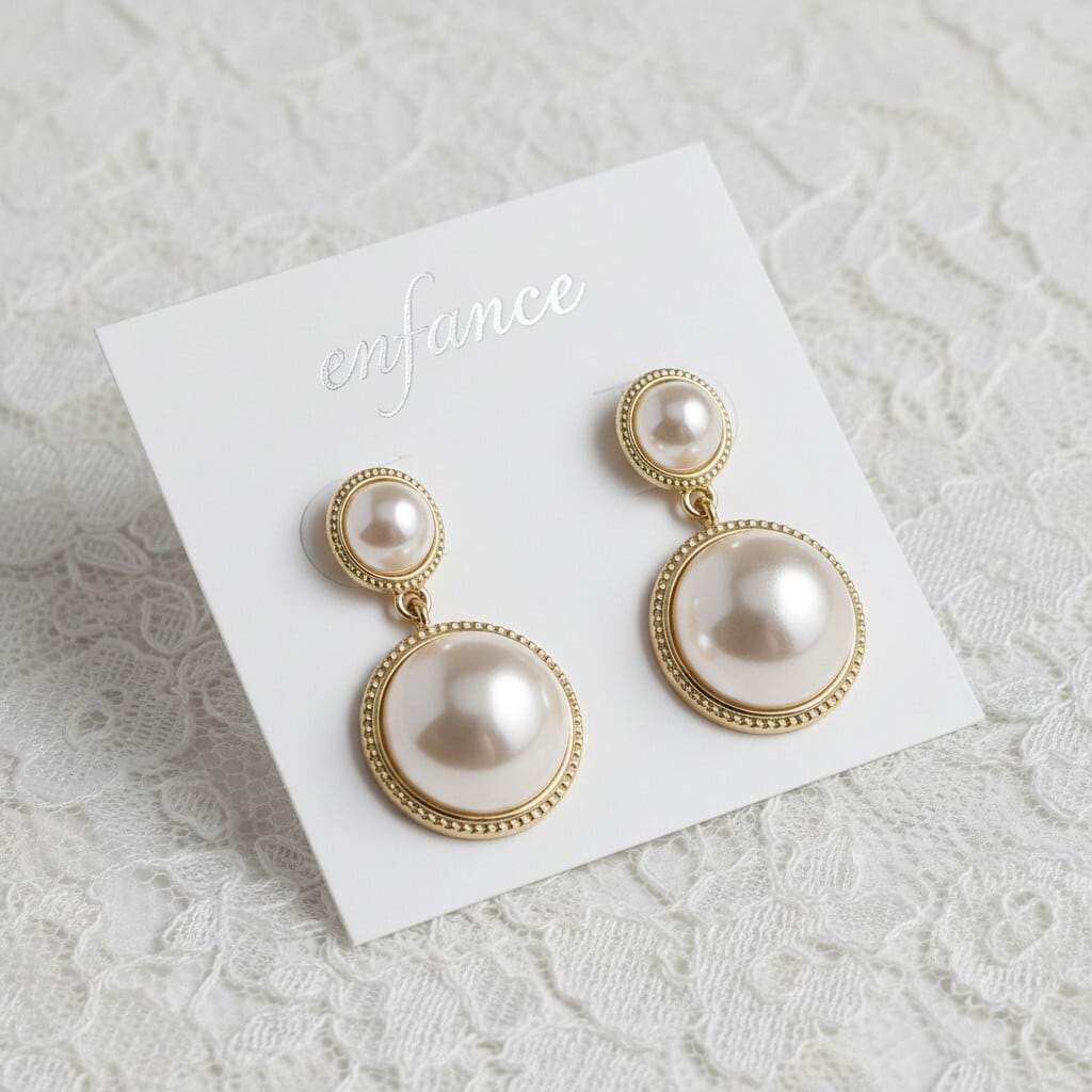 大小のパールを重ねたデザインで、動くたびに上品な存在感を演出。