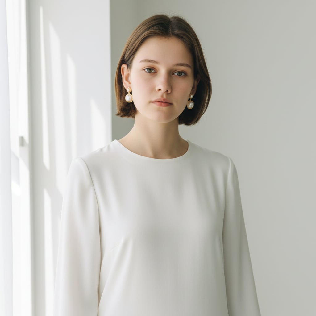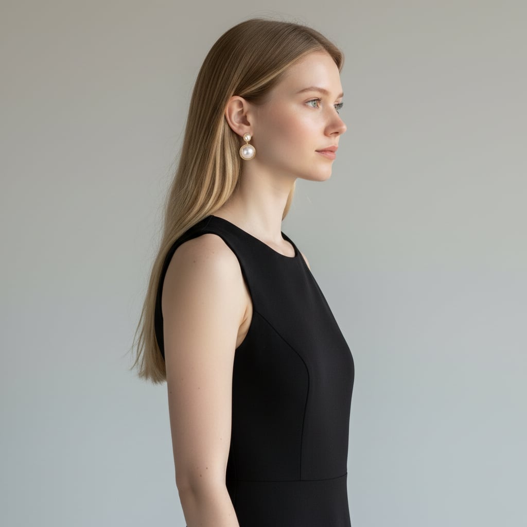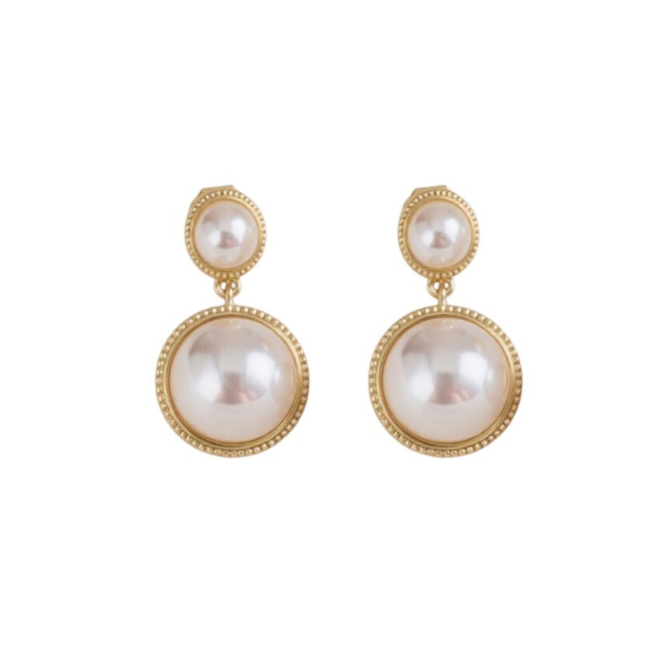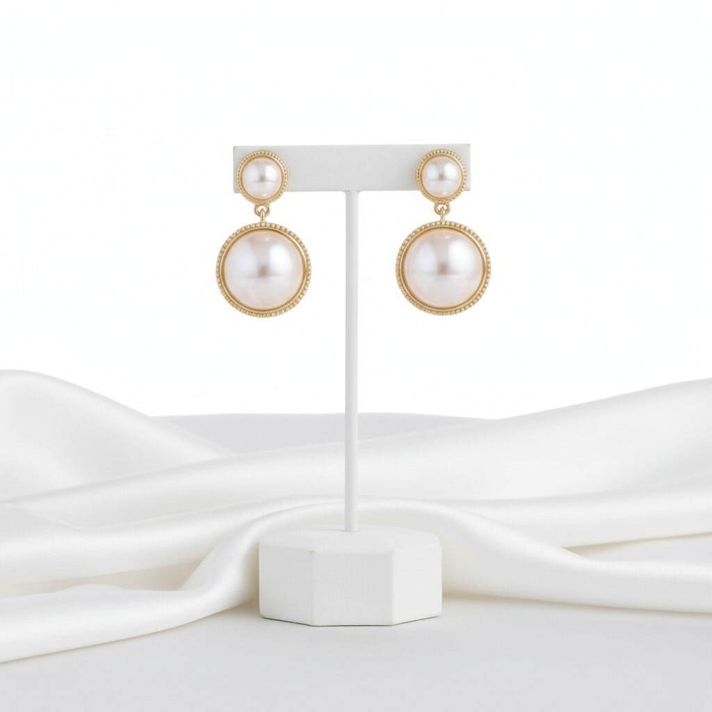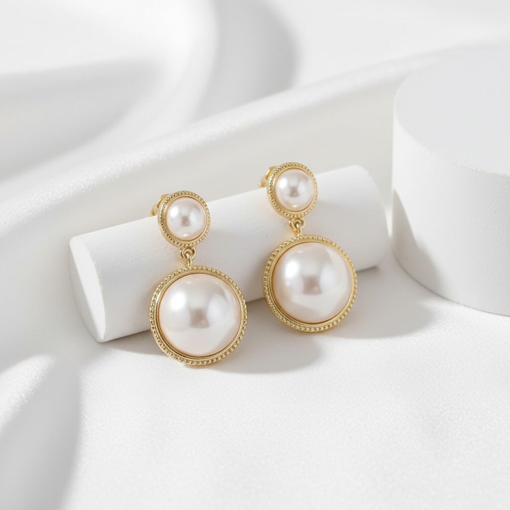 大小のパールを重ねたデザインで、動くたびに上品な存在感を演出。