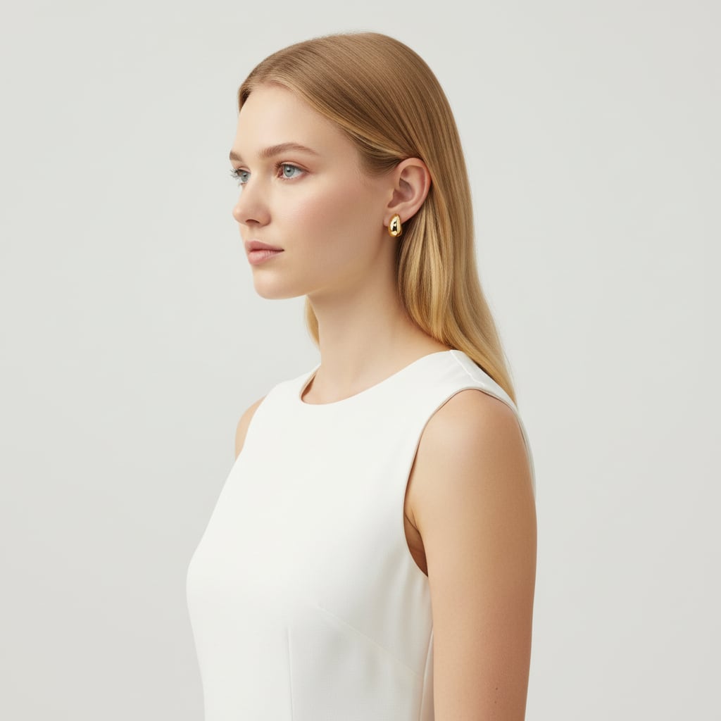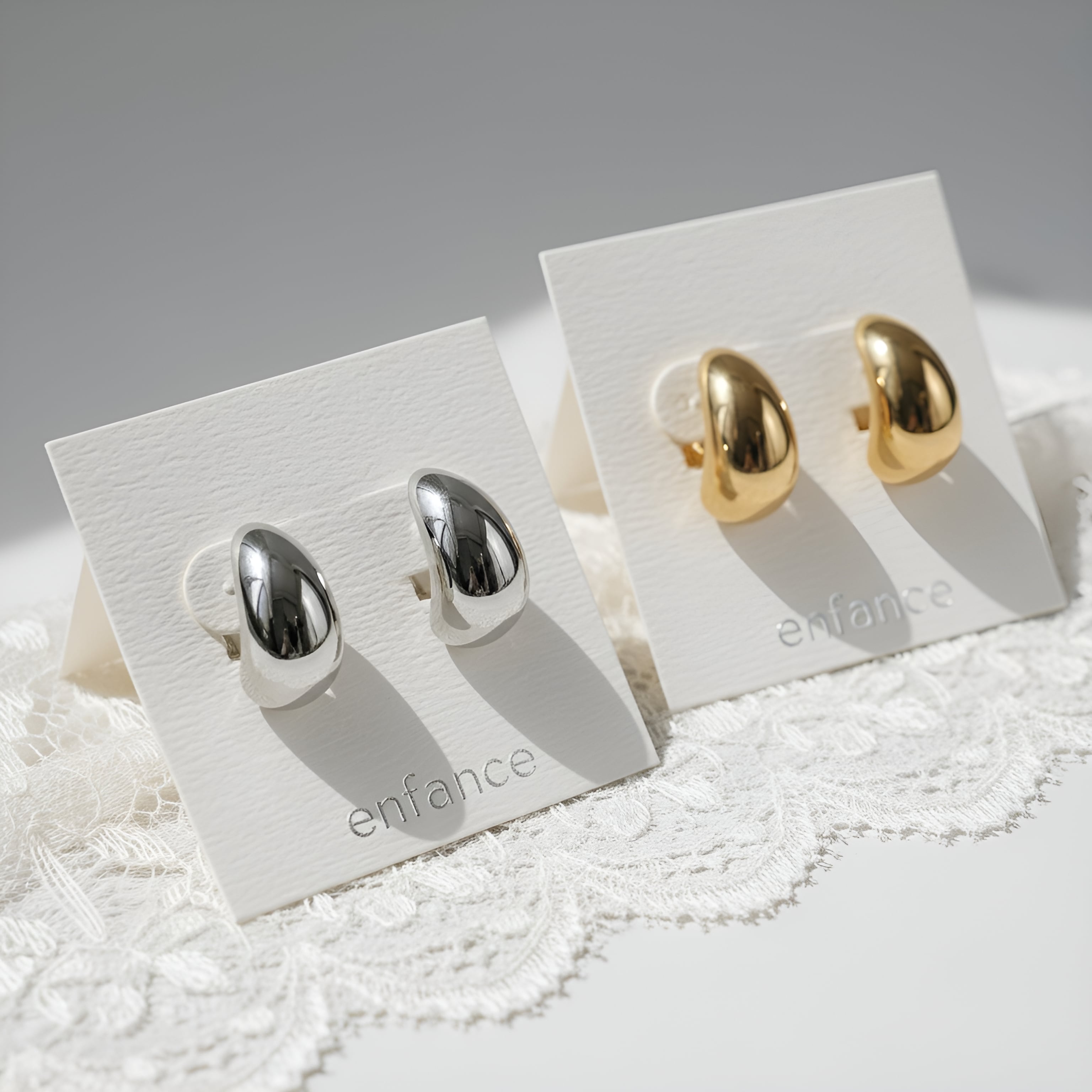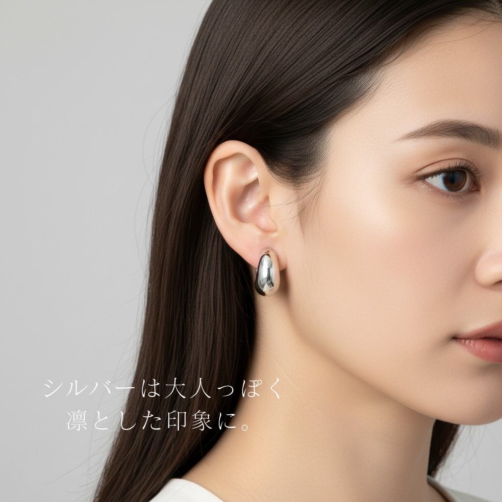 なめらかな曲線と艶やかな質感が耳元にモダンで洗練された雰囲気を与えます。