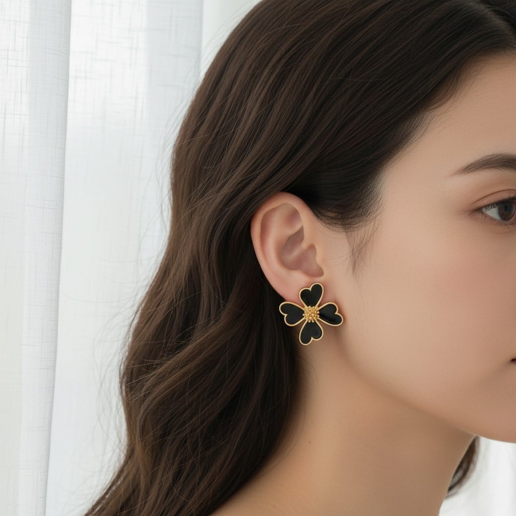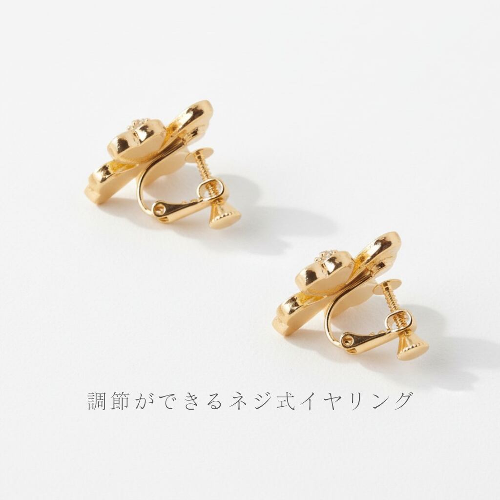 中央のゴールドビーズがさりげなく輝き、顔まわりを華やかに演出します。