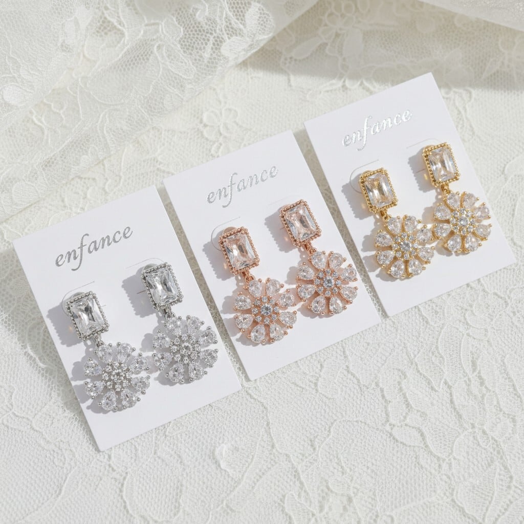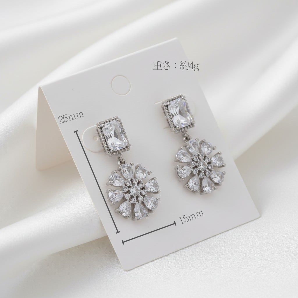 きらめくジルコニアを贅沢にあしらったデザインが耳元を上品に華やかに彩ります。