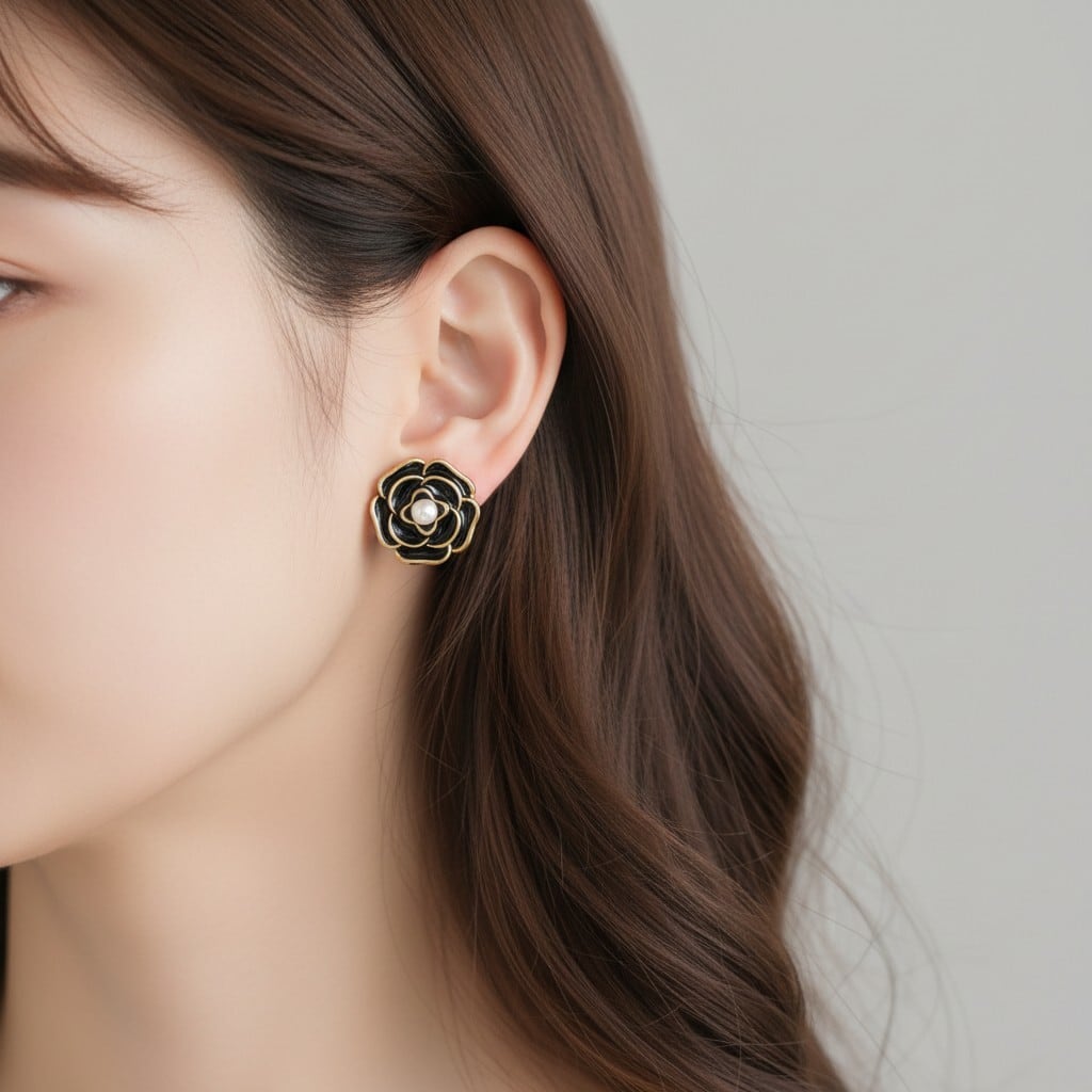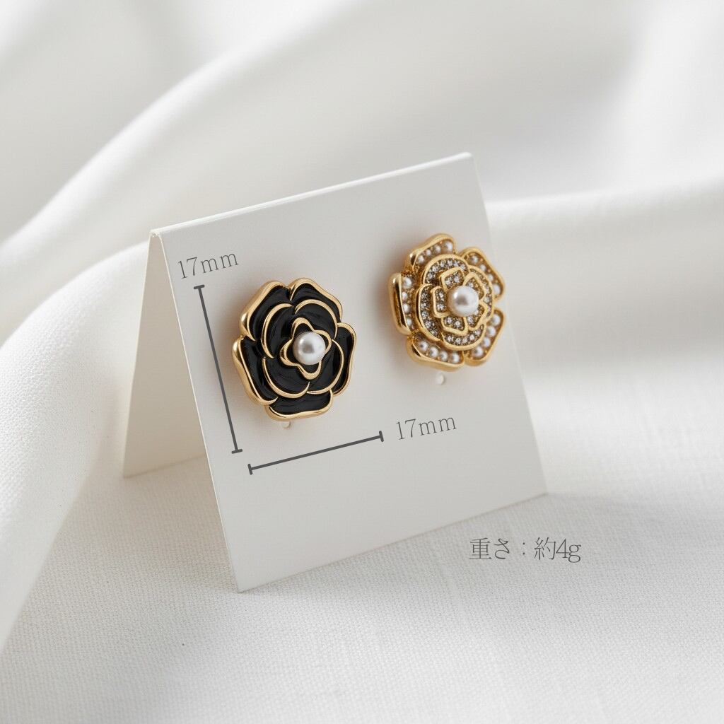 ♯14 black rose パール イヤリング