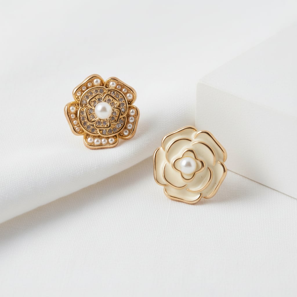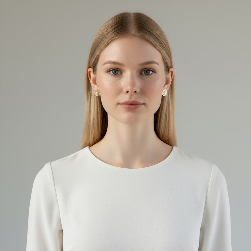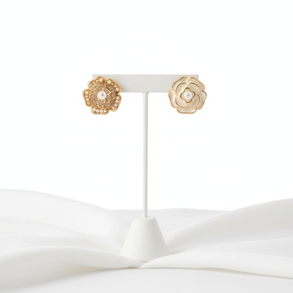 ゴールドの輝きが耳元を明るく彩り、ホワイトカラーが女性らしい柔らかい雰囲気を演出します。
