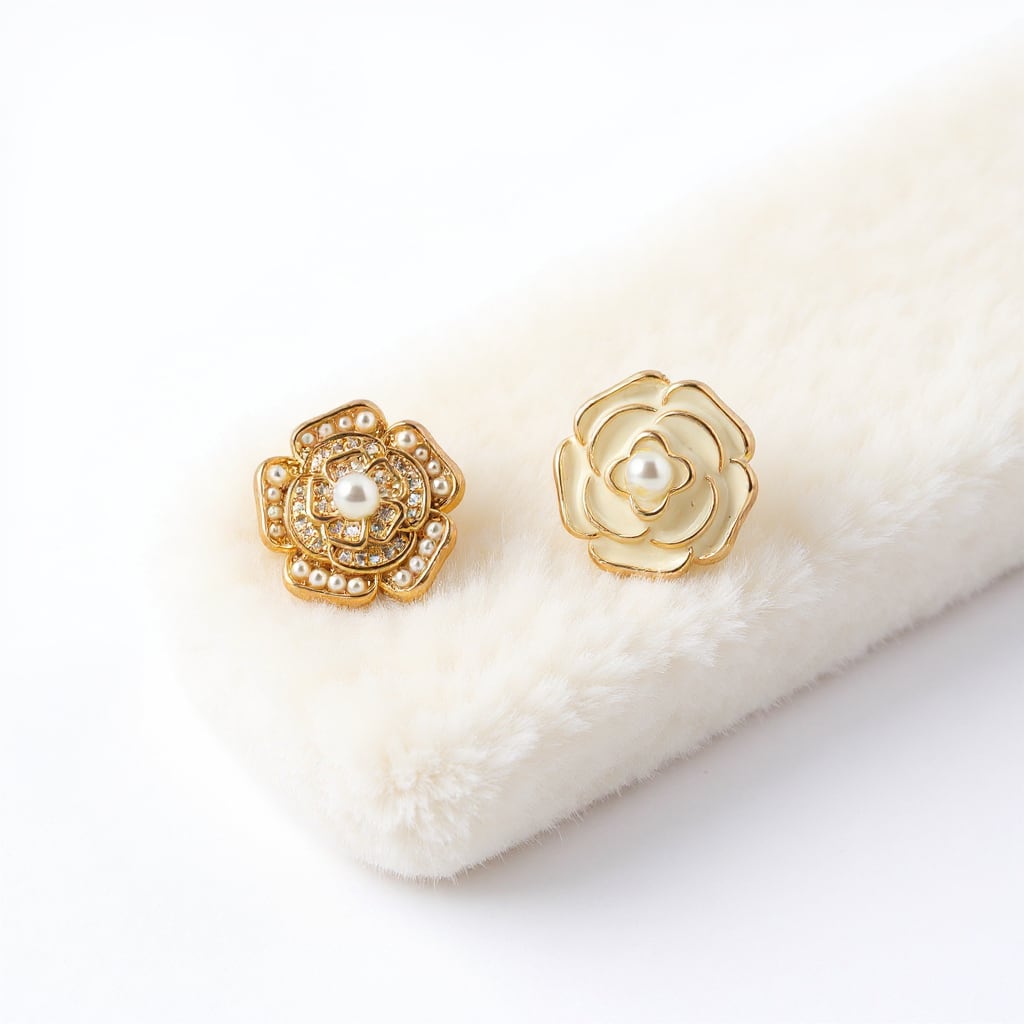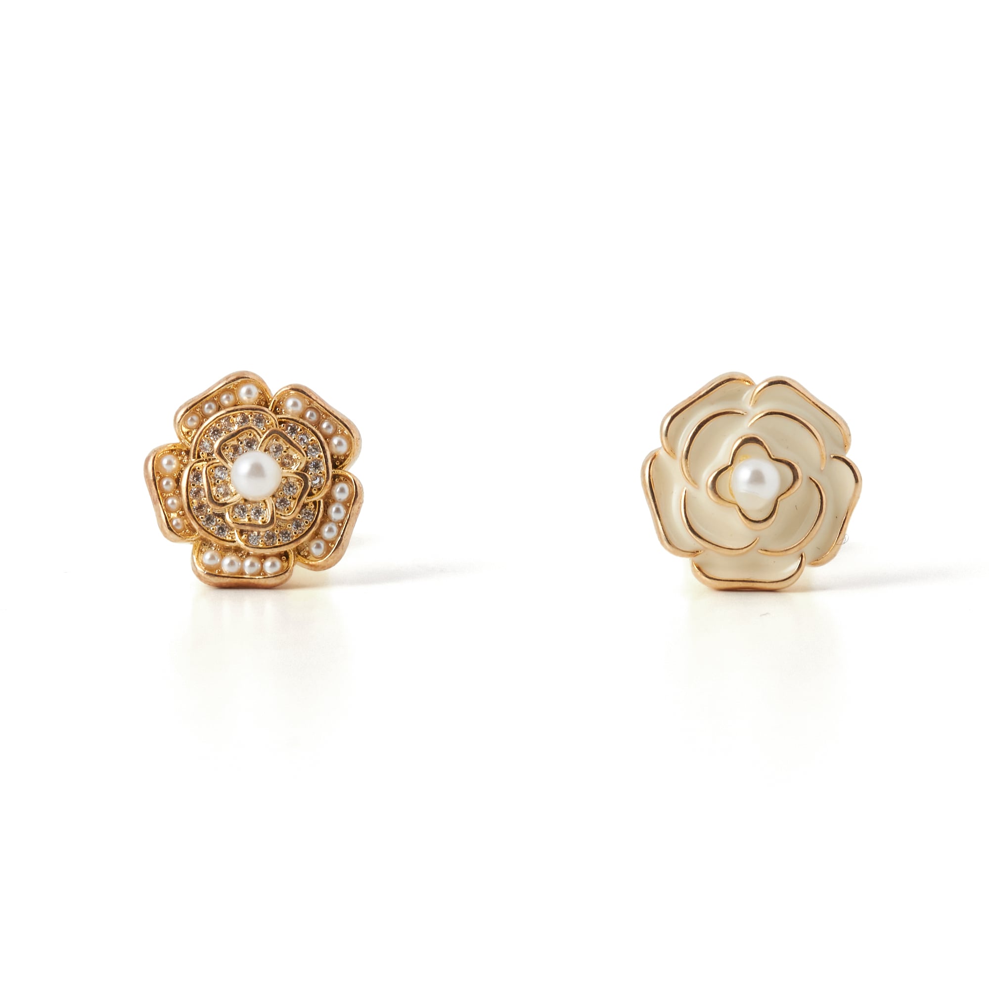 高級感のあるバラのデザインにパールを添えた存在感抜群のイヤリング。