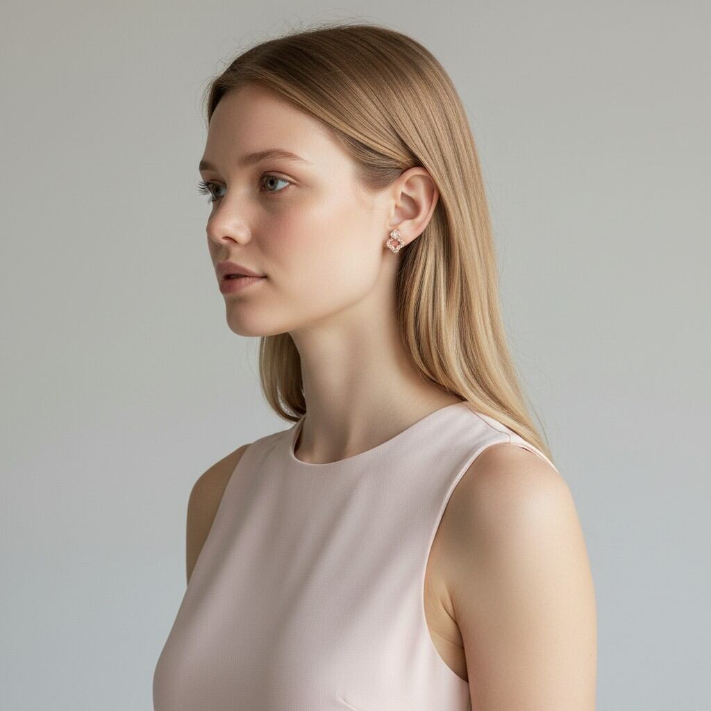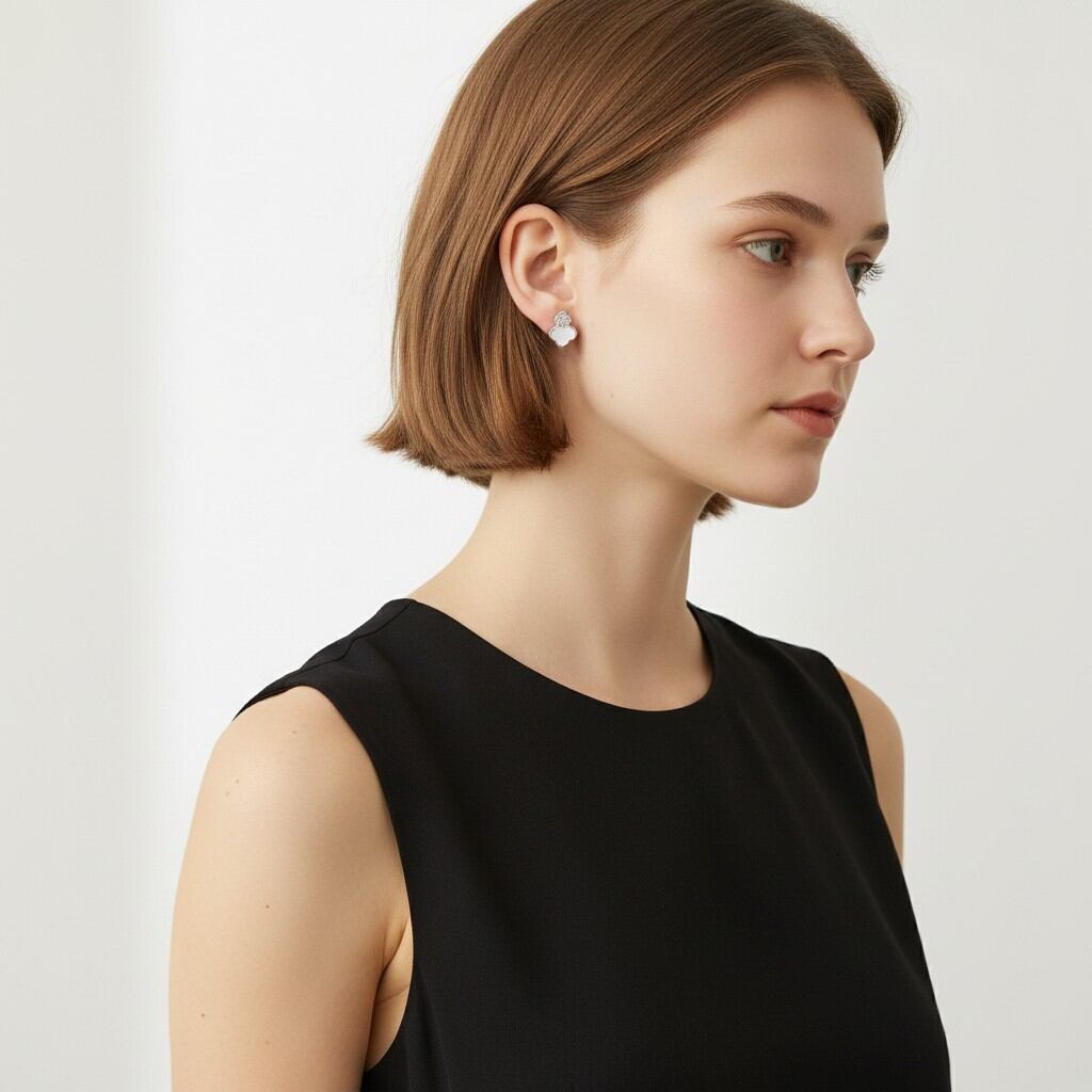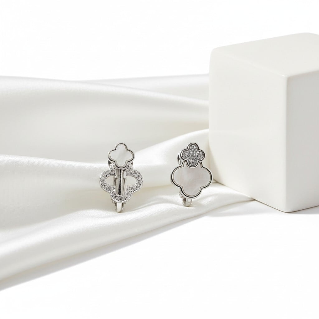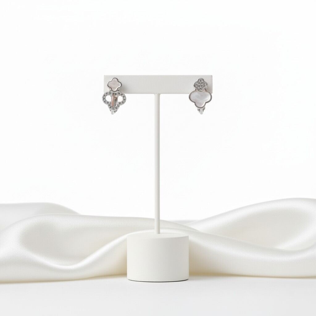 二連に連なったクローバーに繊細なきらめきを添えた上品なイヤリング。