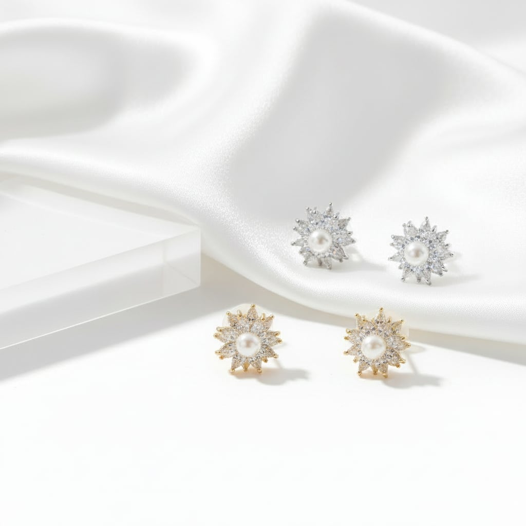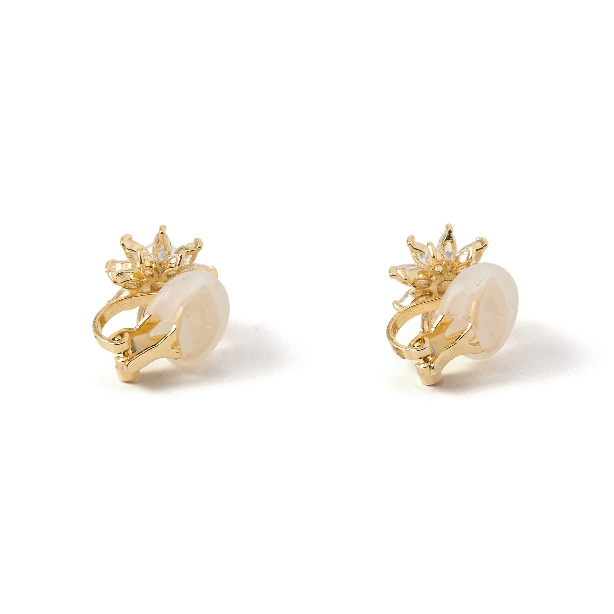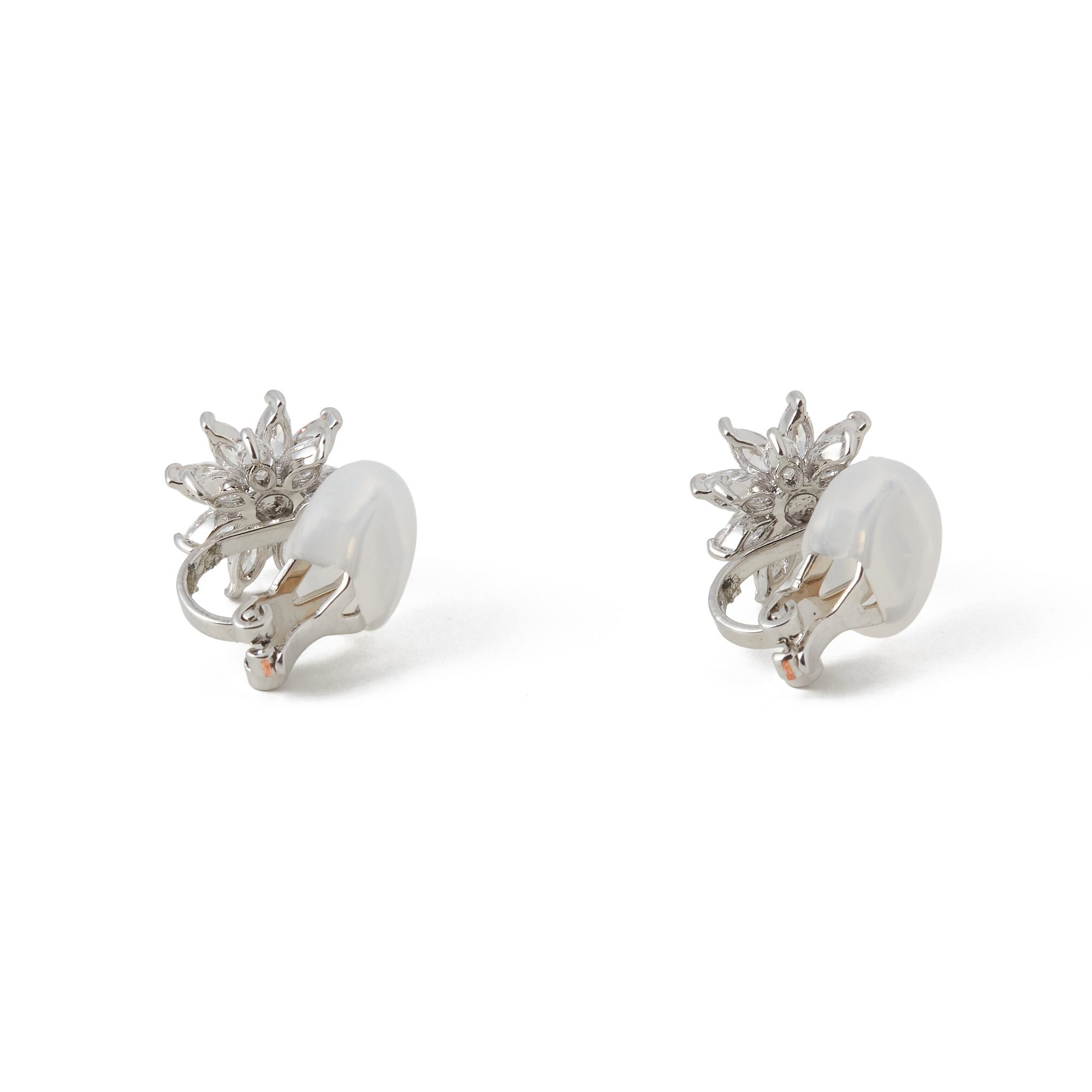 パールを囲む繊細なきらめきが印象的なイヤリング。