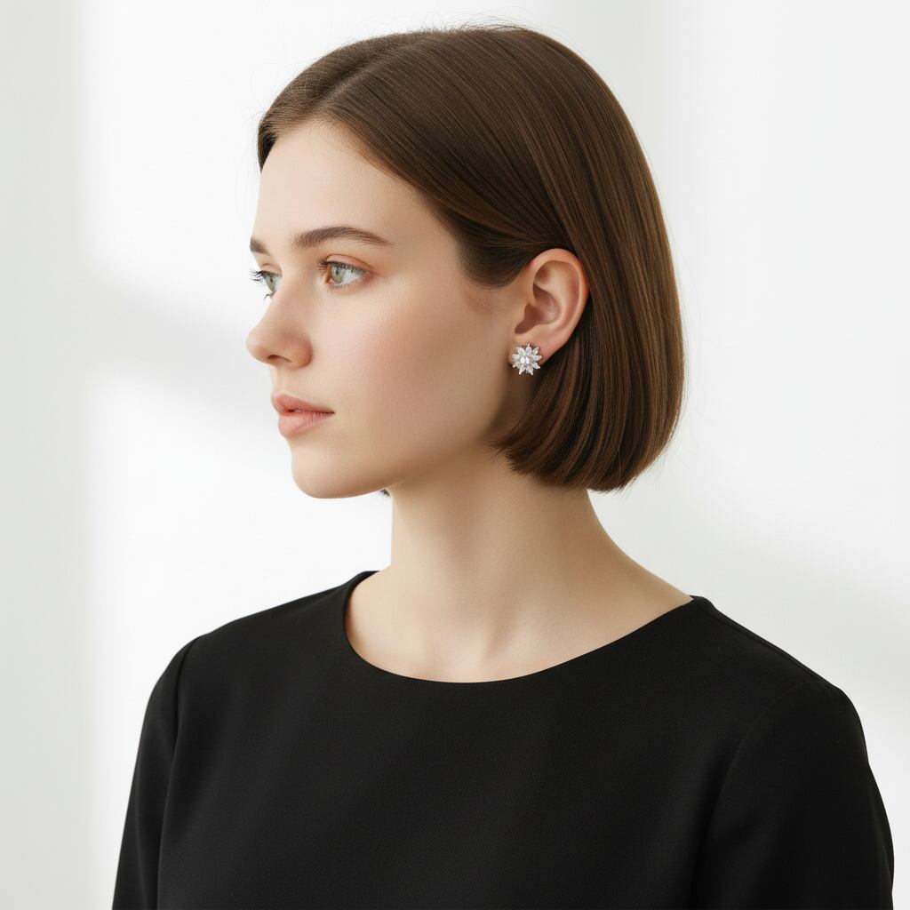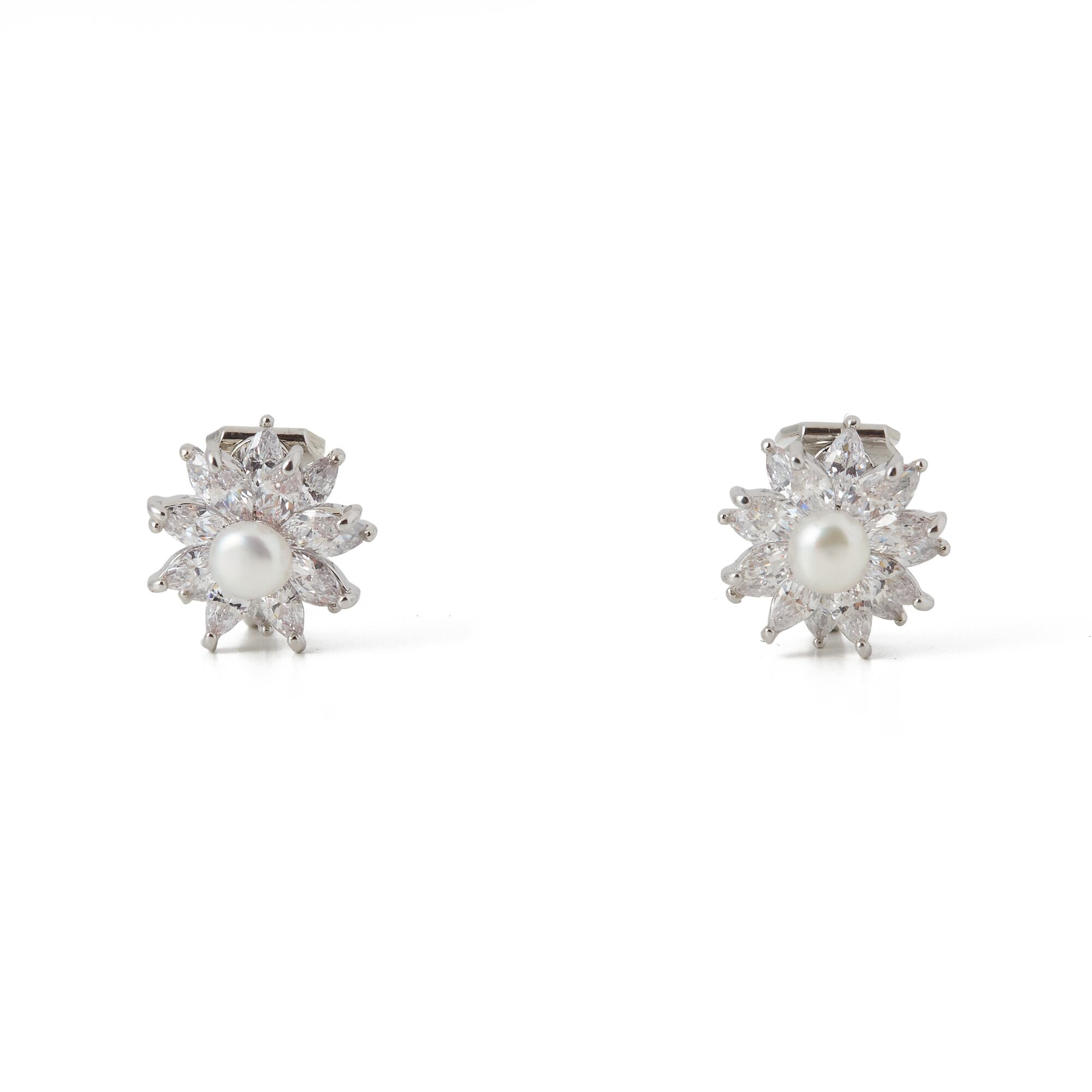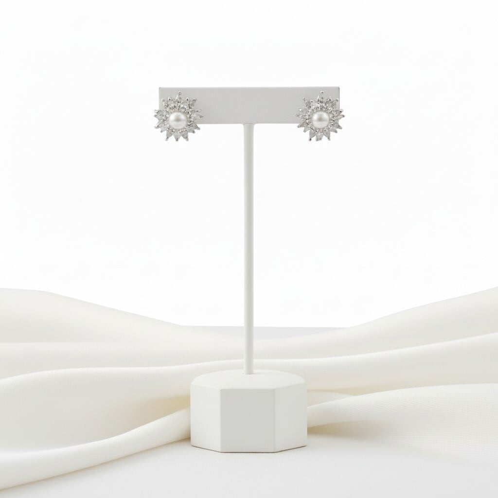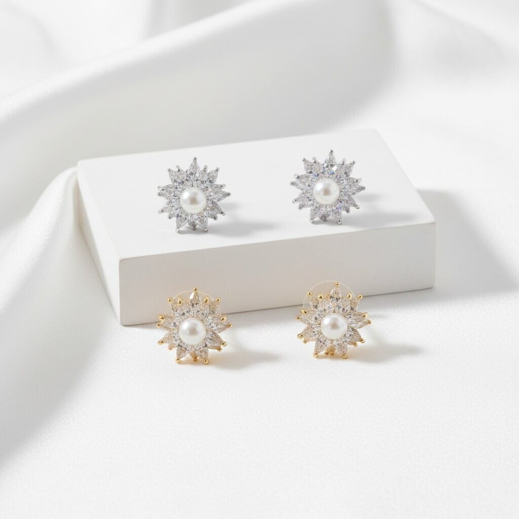 パールを囲む繊細なきらめきが印象的なイヤリング。