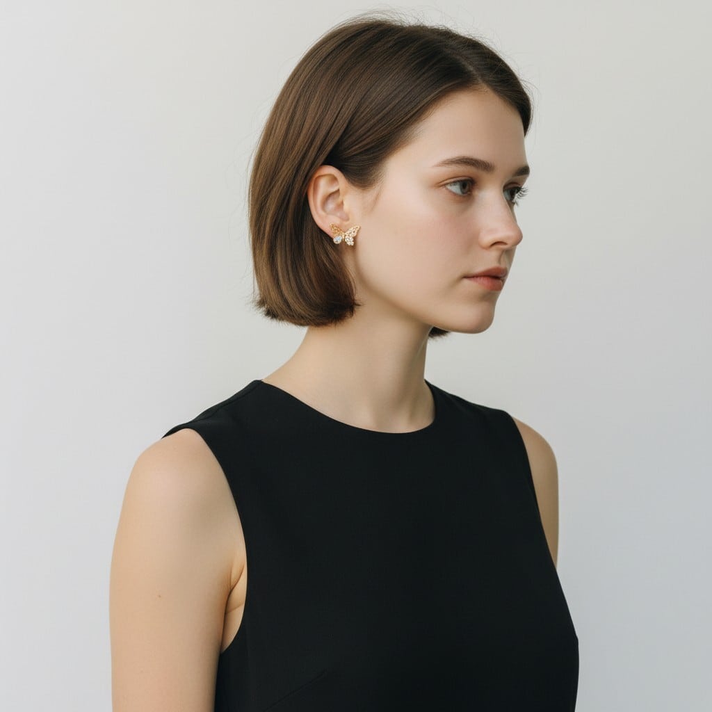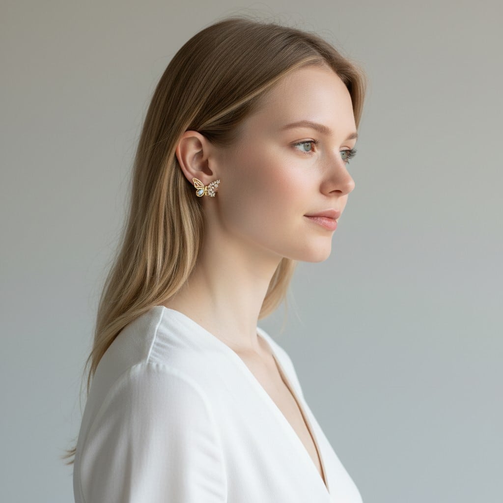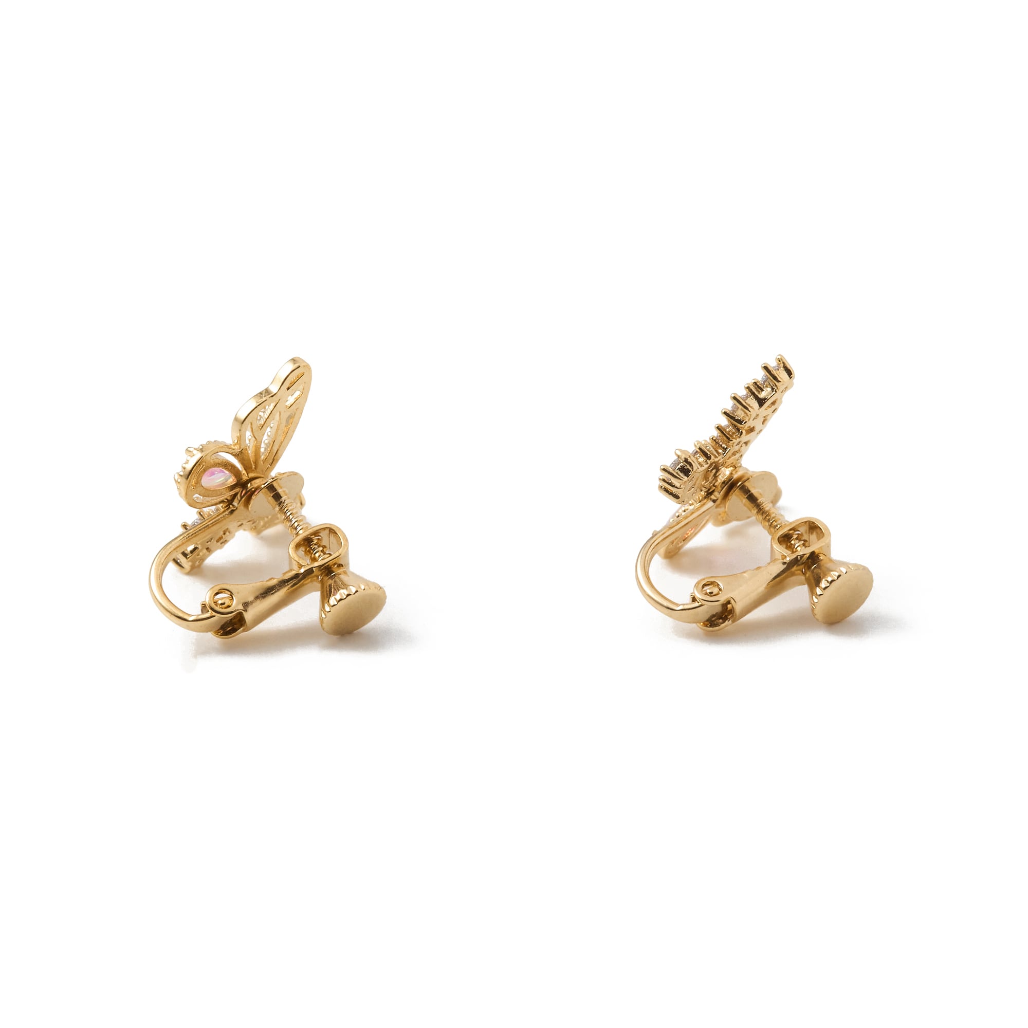繊細な蝶のデザインにきらめくビジューをあしらった華やかなイヤリング。