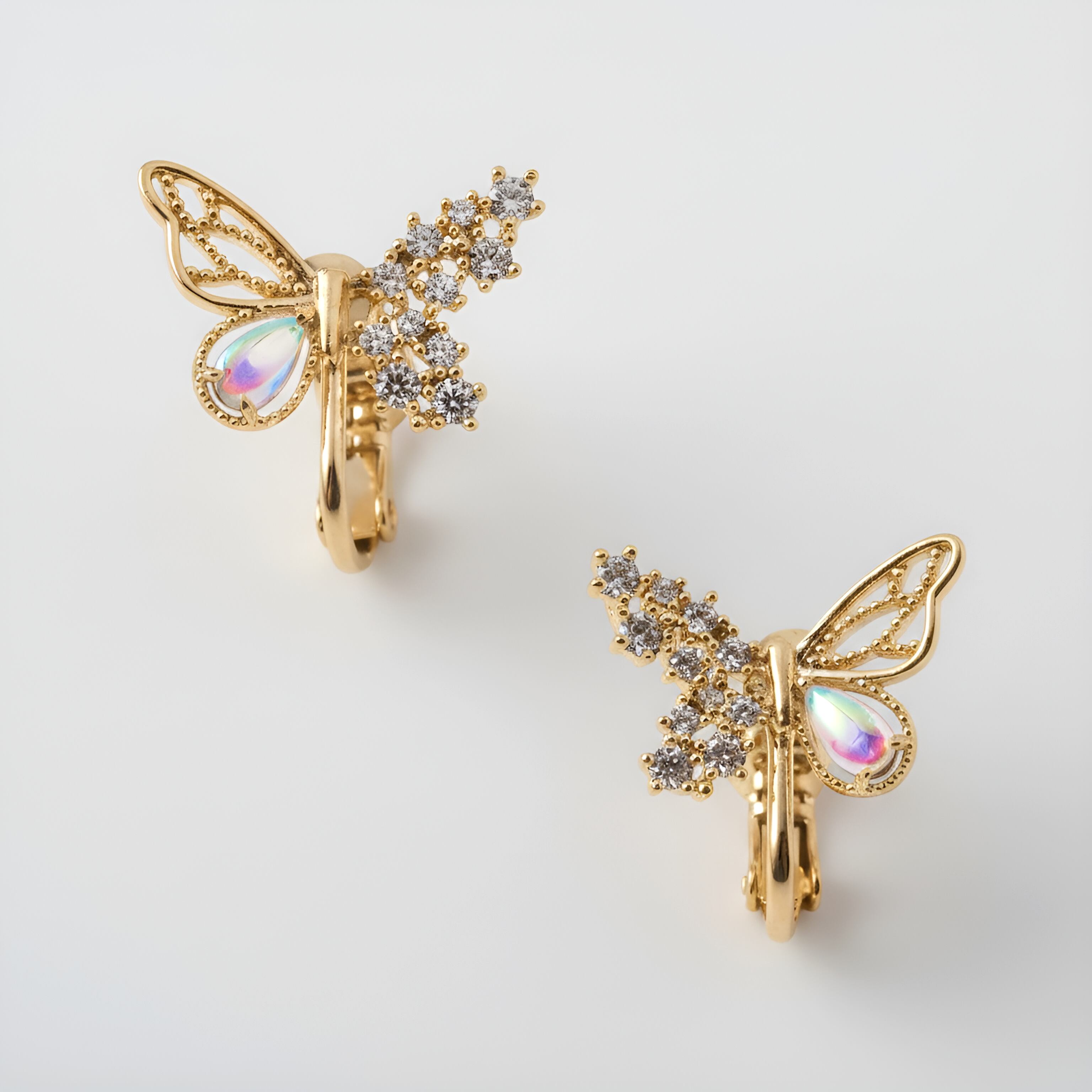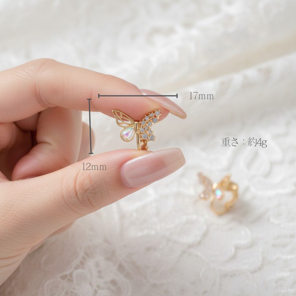 繊細な蝶のモチーフにきらめくジルコニアをあしらった華やかなデザイン。