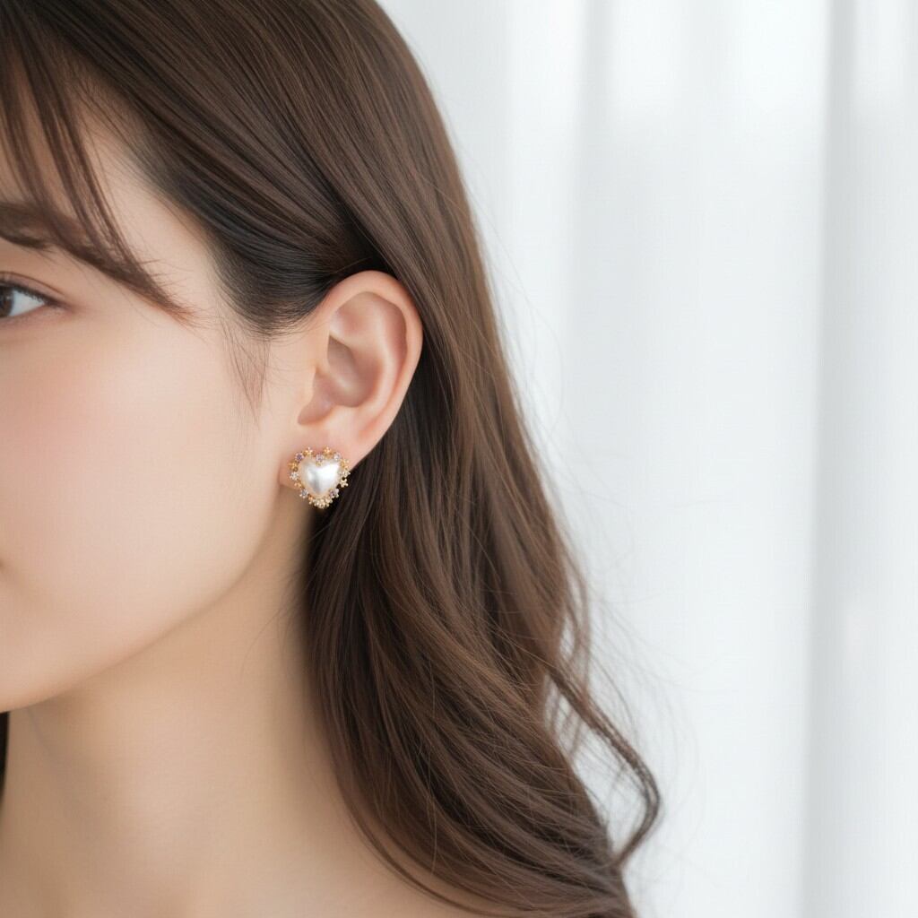 やさしい艶感のパールが耳元を明るく見せ、甘さの中に大人の気品を添えてくれます。
