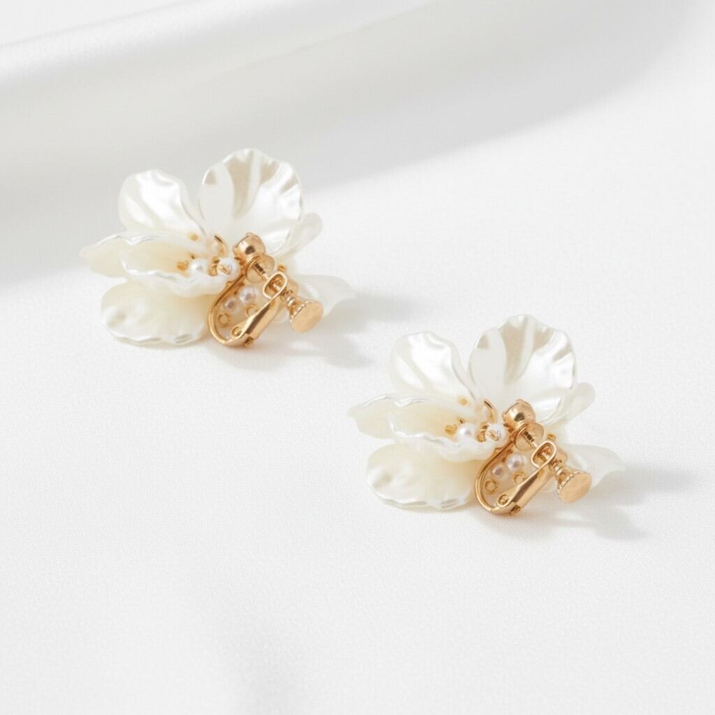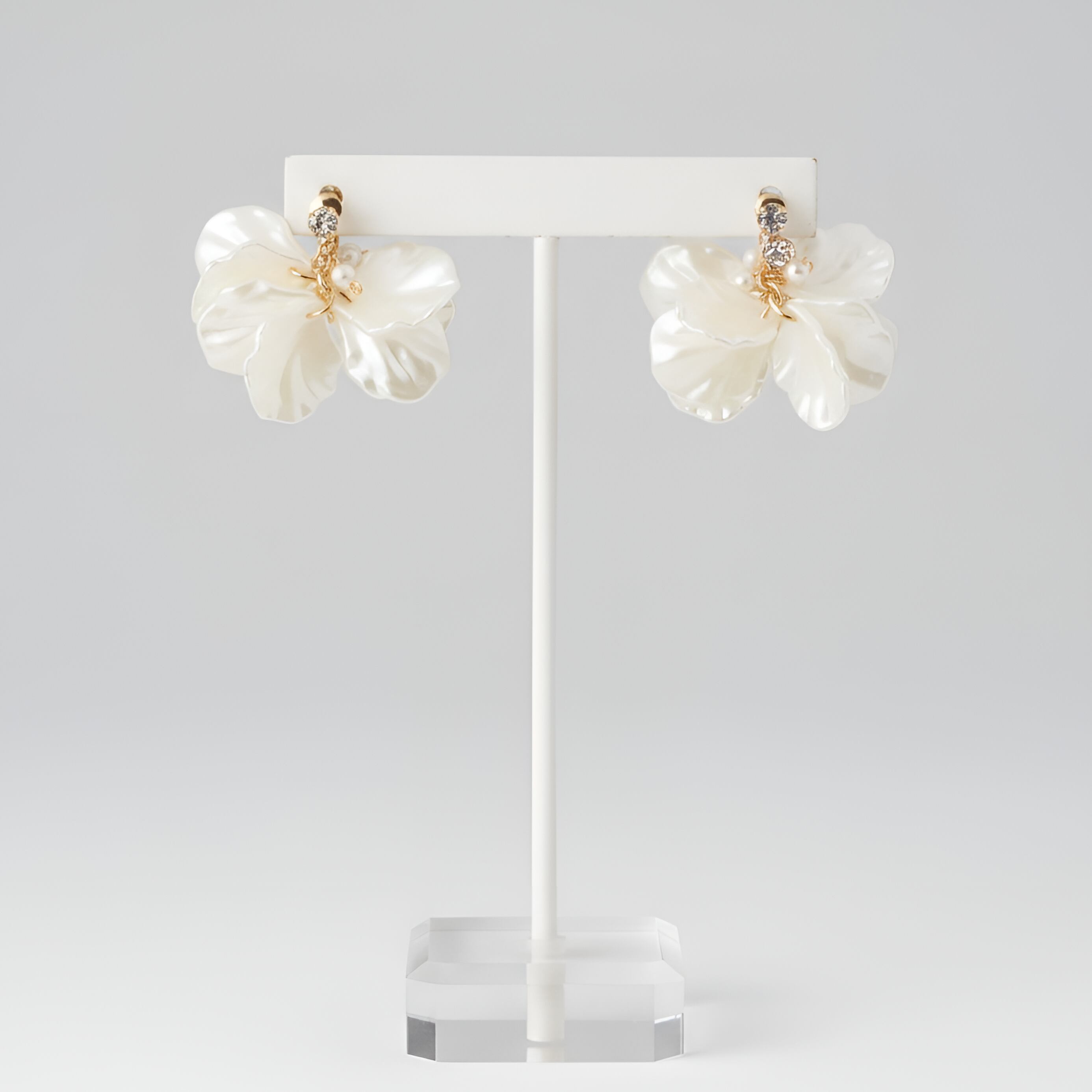 艶やかな花びらが優しく広がる上品でフェミニンなイヤリング。