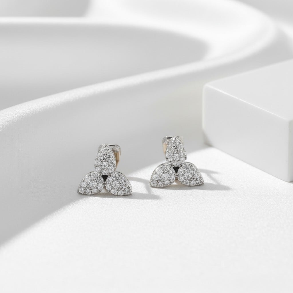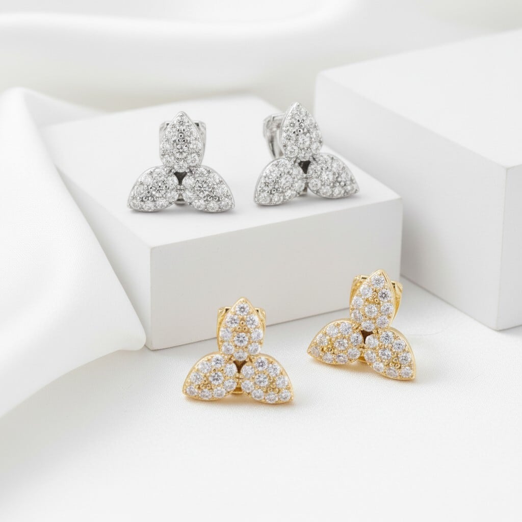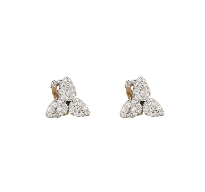 繊細にきらめくストーンを敷き詰めた花びらが特徴的なイヤリング。