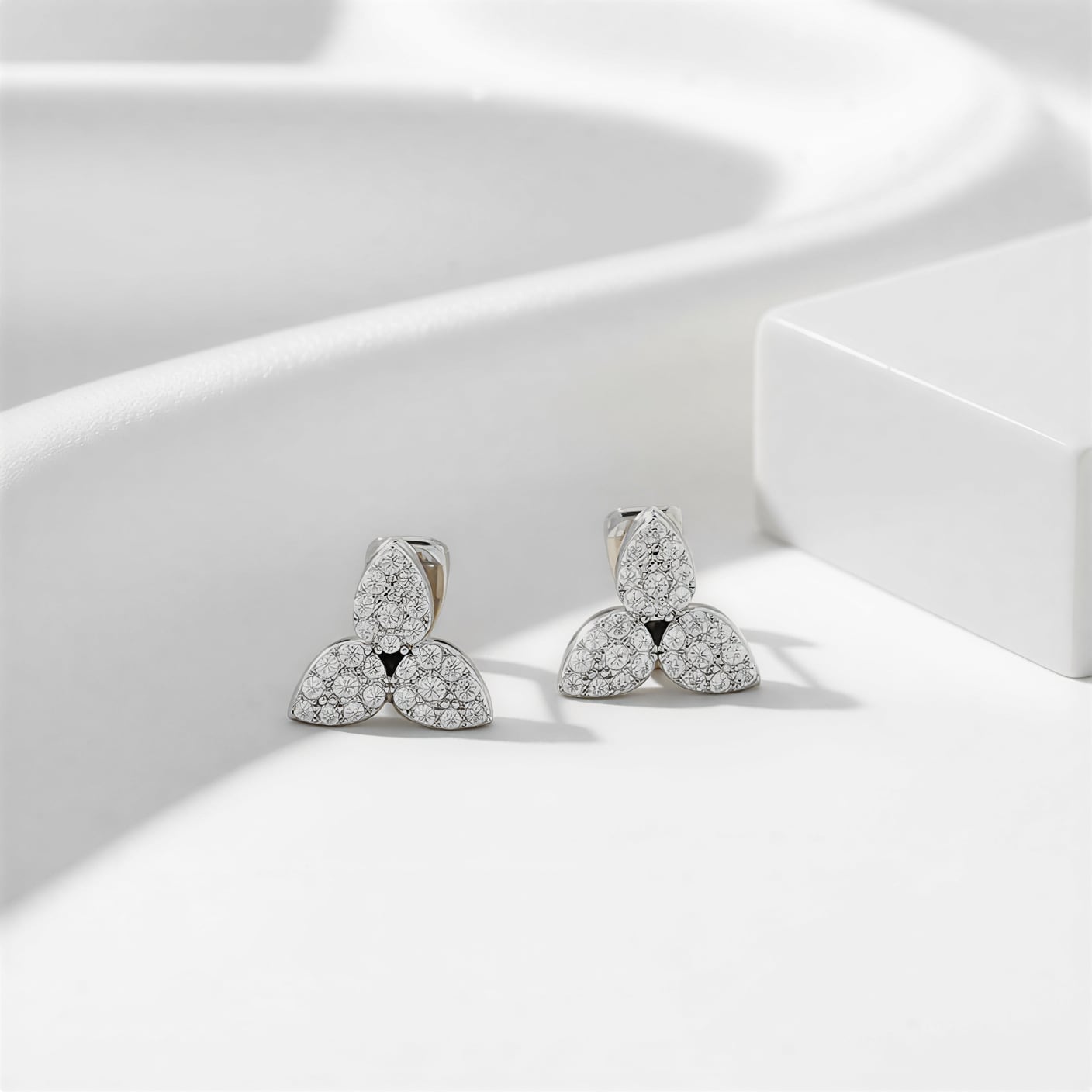 繊細にきらめくジルコニアを敷き詰めたイヤリング。