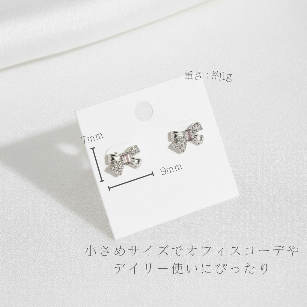 ♯39 ❤︎金属アレルギー対応❤︎ pink mini ribbon 痛くないイヤリング ジルコニア リボン ノンホール