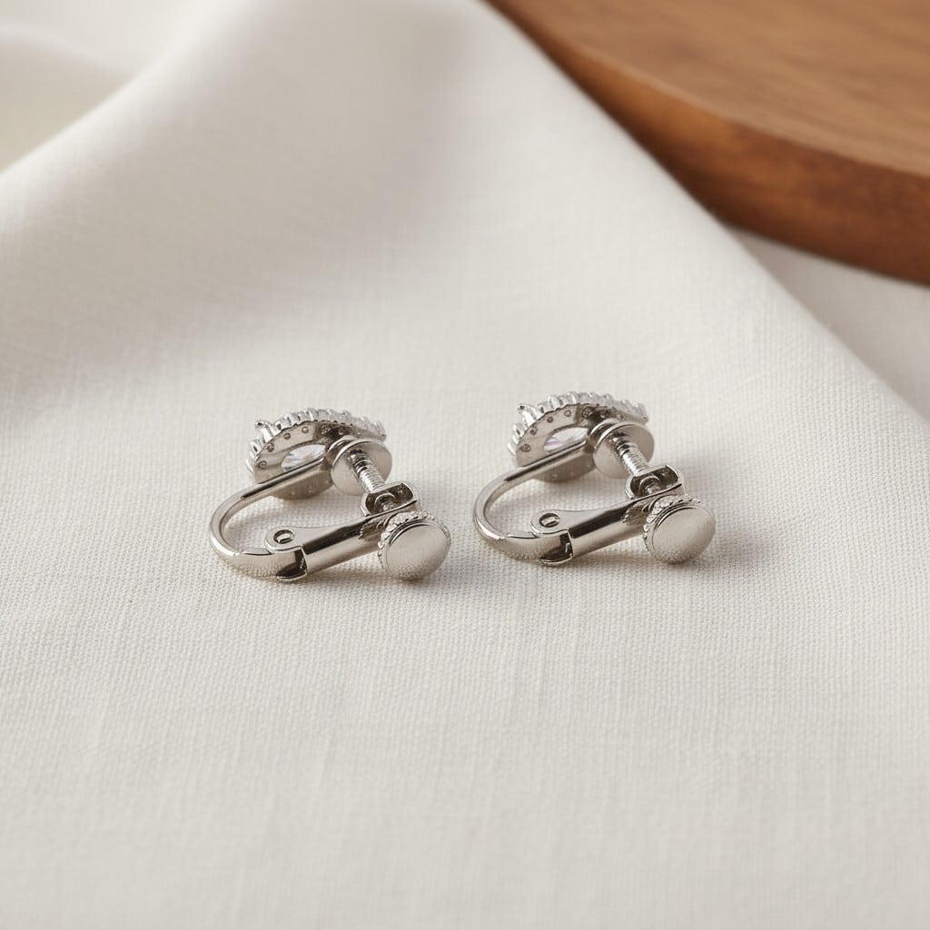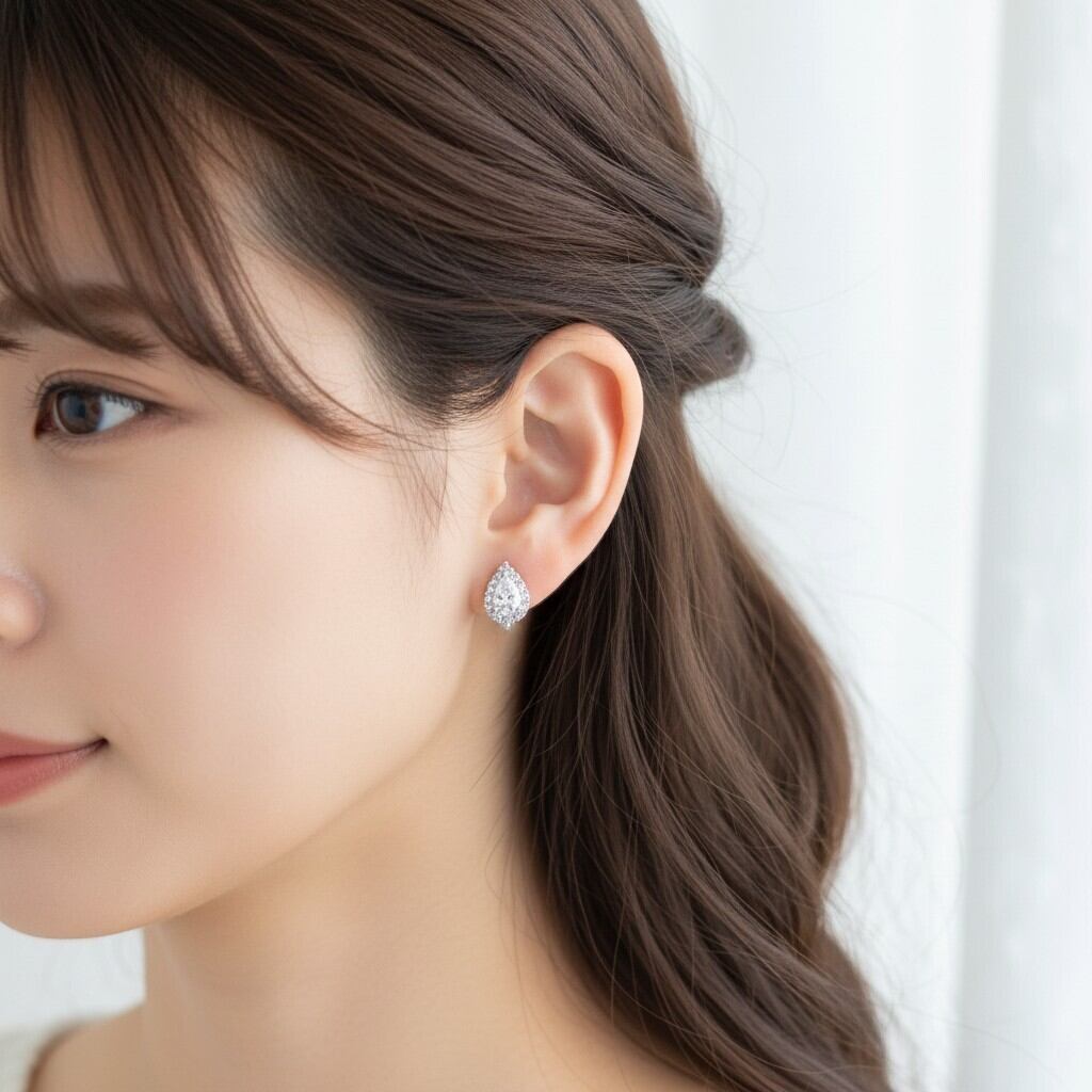雫のフォルムに光り輝くジルコニアをあしらったエレガントなイヤリング。